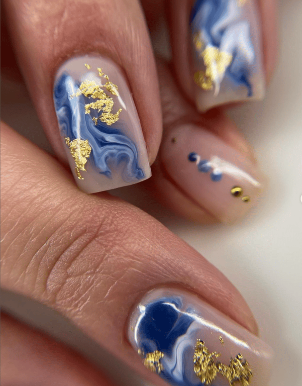 In recent years, wearing gemstones on your nails has become popular but using flowers and golden foil has always been a trend. Women find it quite challenging to keep up with this new trend. Because it is quite tough to use and maintain these lovely long nails in coffin shape. Although, no one can’t deny the harmony of the lavender hue with the flowers tahat gives it a cheerful look. As you can see, it blends beautifully with the purple-toned gems as well which you can add in the middle of flower designs.